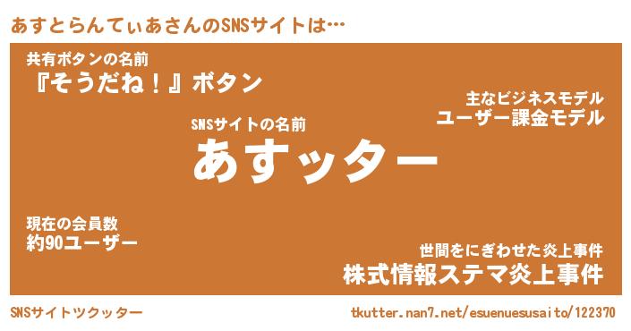 | 草はえルンゴwww …「ツクッター」 | 12月29日 07:12 |