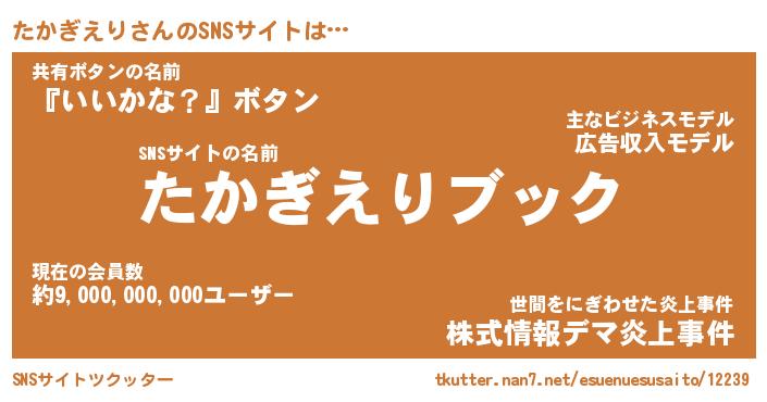 | 胡散臭い通販商品みたいなあだ名 | 『億万長者になれるブレスレット…その名も「たかぎえり」』 |