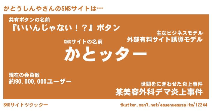 | 胡散臭い通販商品みたいなあだ名 | 『億万長者になれる霊験あらたかなお札…その名も「かとうしんや」』 |