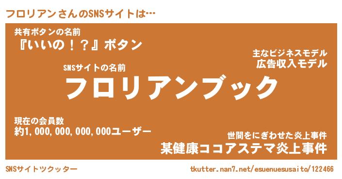 | 胡散臭い通販商品みたいなあだ名 | 『億万長者になれるブレスレット…その名も「フロリアン」』 |