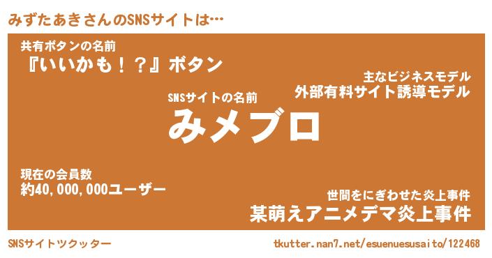 | 男性向けラノベタイトル風あだ名 | 『ミズタアキアートオンライン』 |