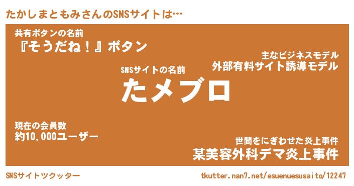 | 肩書あだ名 | 『たかしまともみ店長』 |