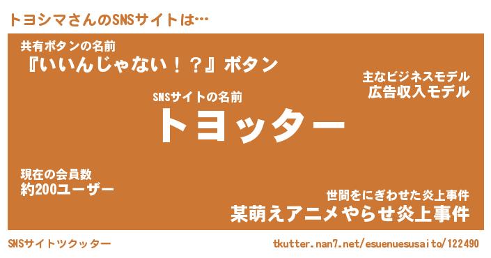 | 男性向けラノベタイトル風あだ名 | 『トヨシマアートオンライン』 |