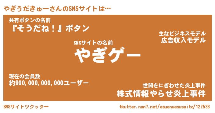 | 肩書あだ名 | 『やぎうだきゅーCEO』 |