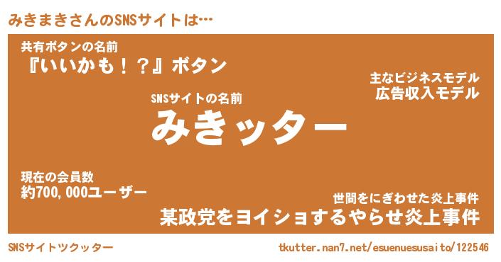 | 胡散臭い通販商品みたいなあだ名 | 『億万長者になれる霊験あらたかなお札…その名も「みきまき」』 |