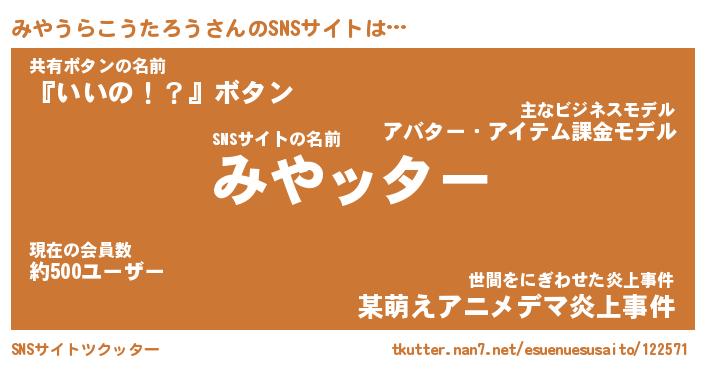 | 肩書あだ名 | 『みやうらこうたろう社長』 |