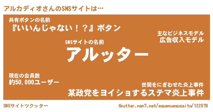 | ツイッター | アルカディオさんのツイッターID『fukuyoka_nyan』 |