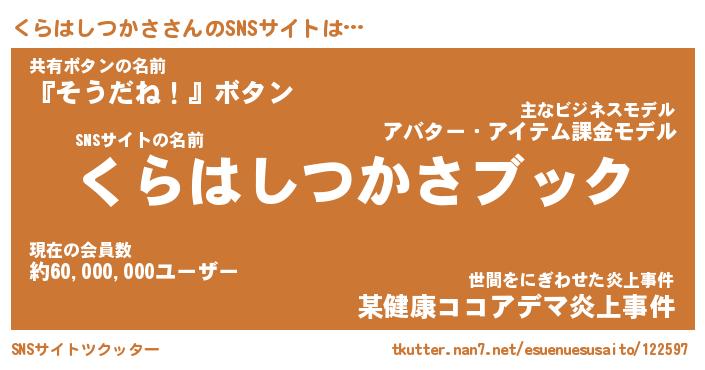 | 胡散臭い通販商品みたいなあだ名 | 『億万長者になれる霊験あらたかなお札…その名も「くらはしつかさ」』 |