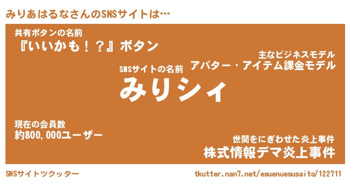 | 胡散臭い通販商品みたいなあだ名 | 『必ず成功する水晶球…その名も「みりあはるな」』 |