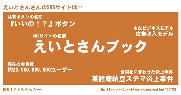 | 胡散臭い通販商品みたいなあだ名 | 『億万長者になれるブレスレット…その名も「えいとさん」』 |