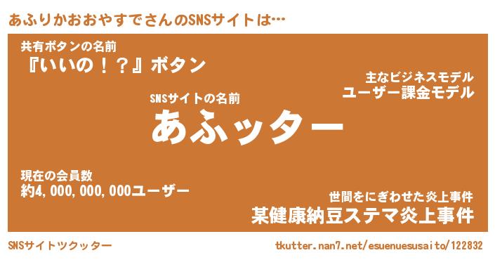 | 肩書あだ名 | 『あふりかおおやすでCEO』 |