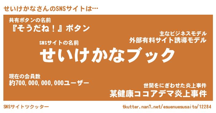 | 肩書あだ名 | 『せいけかな社長』『せいけかな総理大臣』 |