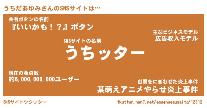 | 肩書あだ名 | 『うちだあゆみCEO』『うちだあゆみ班長』 |