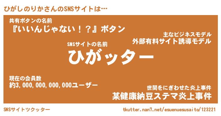 | 男性向けラノベタイトル風あだ名 | 『ヒガシノリカアートオンライン』 |