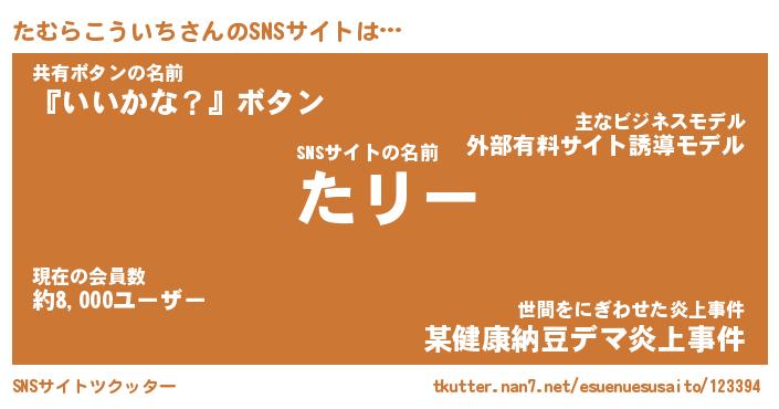 | 肩書あだ名 | 『たむらこういち社長』 |
