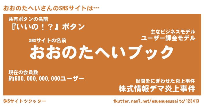 | 肩書あだ名 | 『おおのたへい御曹司』 |