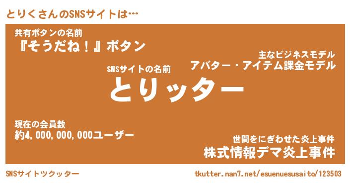| 草はえルンゴwww …「ツクッター」 | 12月29日 07:12 |
