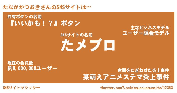 | 女子向けラノベタイトル風あだ名 | 『たなかかつあき姫と円卓の騎士』 |