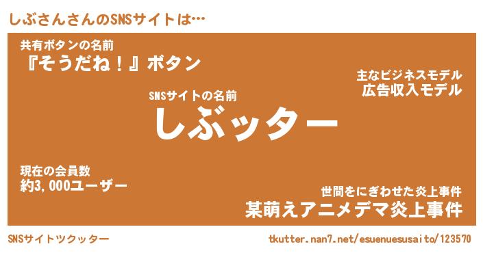 | ファンタジー風あだ名 | 『シブフェル』『エターナルシブサンー』 |