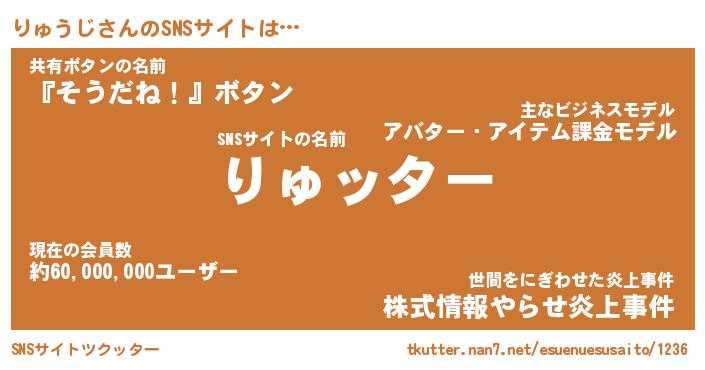| 肩書あだ名 | 『りゅうじ社長』『りゅうじ国家主席』 |