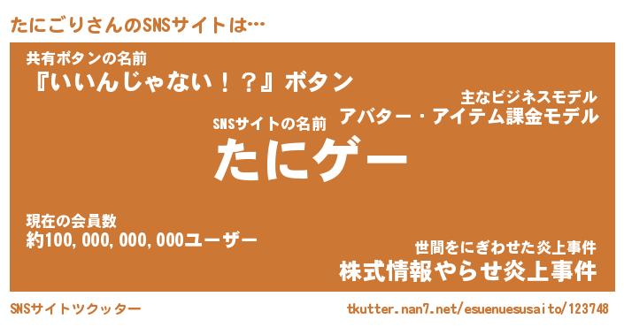 | ポケモン風あだ名 | 『タニチュウ』『タニゴダネ』 |