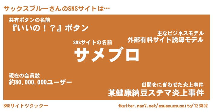 | 男性向けラノベタイトル風あだ名 | 『サックスブルーアートオンライン』 |