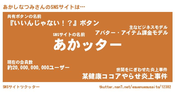 | 胡散臭い通販商品みたいなあだ名 | 『億万長者になれる霊験あらたかなお札…その名も「あかしなつみ」』 |