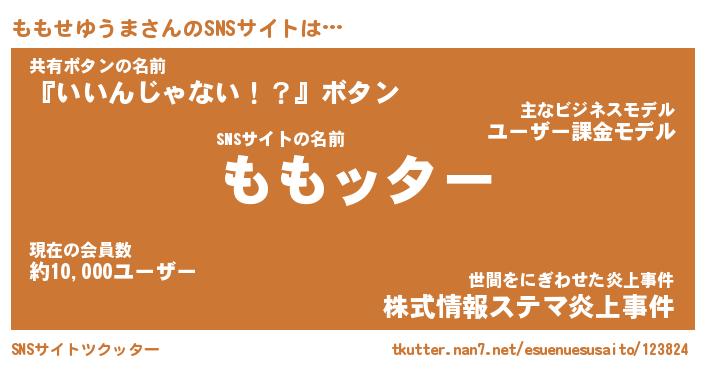 | 胡散臭い通販商品みたいなあだ名 | 『億万長者になれるブレスレット…その名も「ももせゆうま」』 |