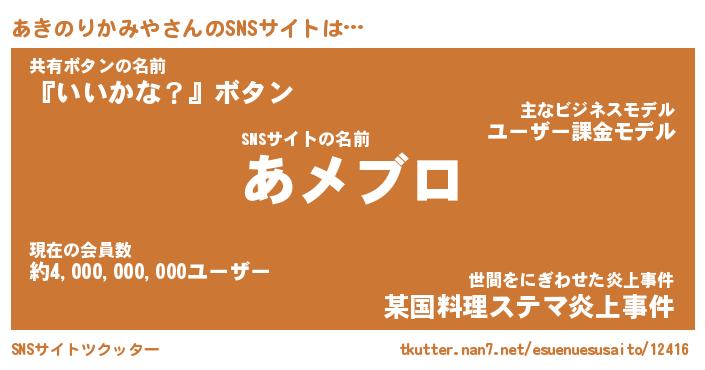 | 胡散臭い通販商品みたいなあだ名 | 『モテモテ間違いなしブレスレット…その名も「あきのりかみや」』 |