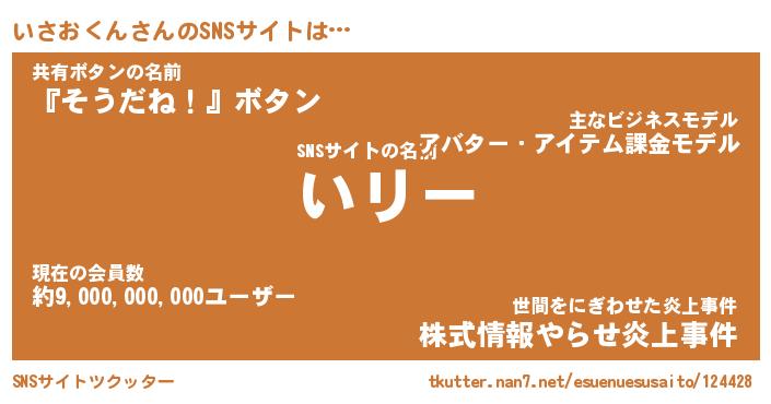 | ポケモン風あだ名 | 『イサチュウ』『イサオダネ』 |