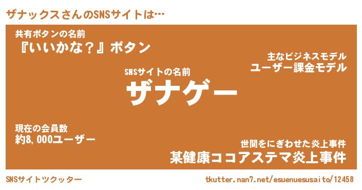 | ヘコむあだ名 | 『ザナにゅー』『なまこ酢』 |