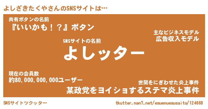 | 肩書あだ名 | 『よしざきたくやCEO』 |
