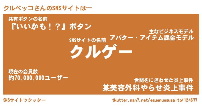 | 男性向けラノベタイトル風あだ名 | 『クルペッコの憂鬱』 |