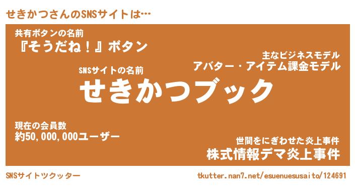 | 意味不明あだ名 | 『ペロリンせきかつ』『永久保存せきかつ』 |