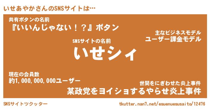 | 胡散臭い通販商品みたいなあだ名 | 『必ず成功する水晶球…その名も「いせあやか」』 |