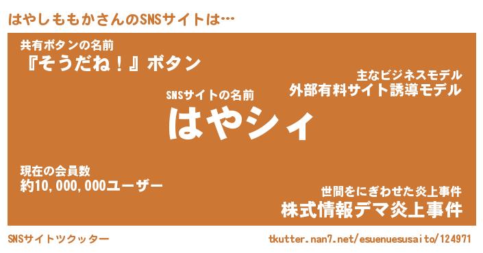 | 肩書あだ名 | 『はやしももか御曹司』 |
