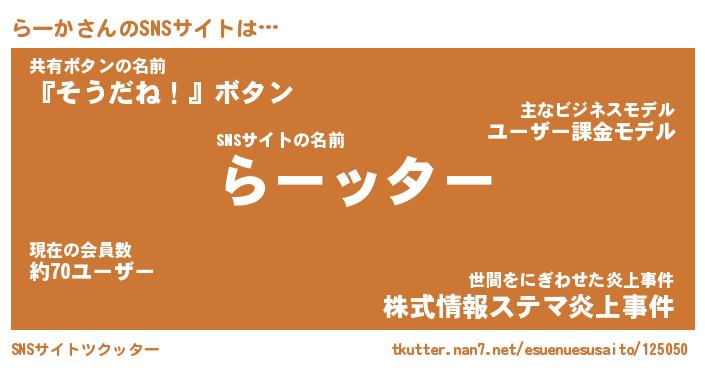 | 草はえルンゴwww …「ツクッター」 | 12月29日 07:12 |