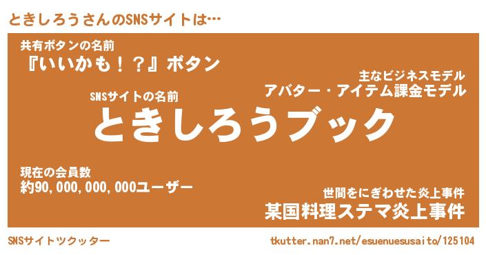 | 胡散臭い通販商品みたいなあだ名 | 『億万長者になれる霊験あらたかなお札…その名も「ときしろう」』 |