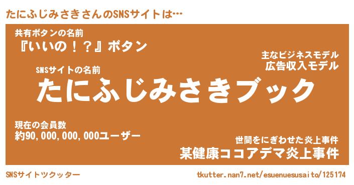 | 胡散臭い通販商品みたいなあだ名 | 『億万長者になれるブレスレット…その名も「たにふじみさき」』 |