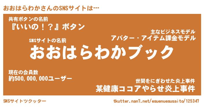 | 胡散臭い通販商品みたいなあだ名 | 『億万長者になれるブレスレット…その名も「おおはらわか」』 |