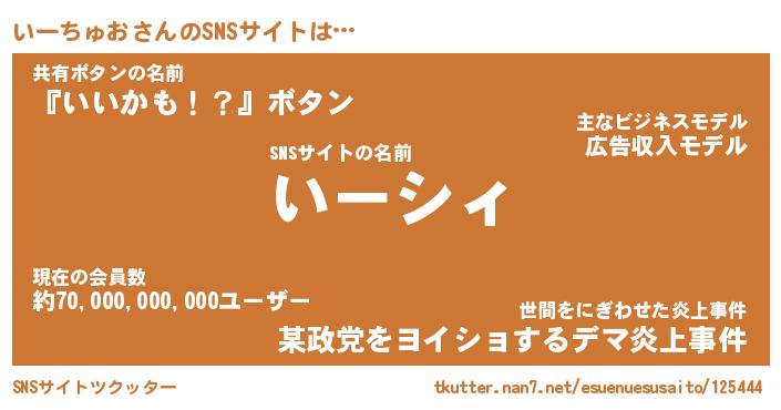 | 肩書あだ名 | 『いーちゅおCEO』『いーちゅお総理大臣』 |