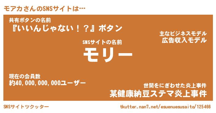| ファンタジー風あだ名 | 『モアフェル』『エターナルモアカー』 |