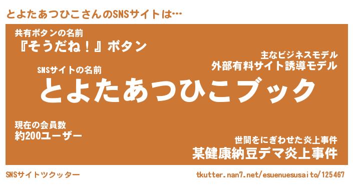 | 肩書あだ名 | 『とよたあつひこCEO』 |