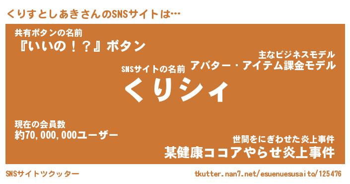 | 肩書あだ名 | 『くりすとしあき店長』 |