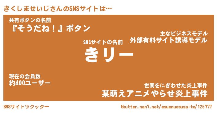 | 肩書あだ名 | 『きくしませいじ店長』 |