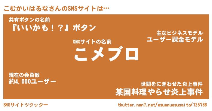 | 胡散臭い通販商品みたいなあだ名 | 『モテモテ間違いなし水晶球…その名も「こむかいはるな」』 |