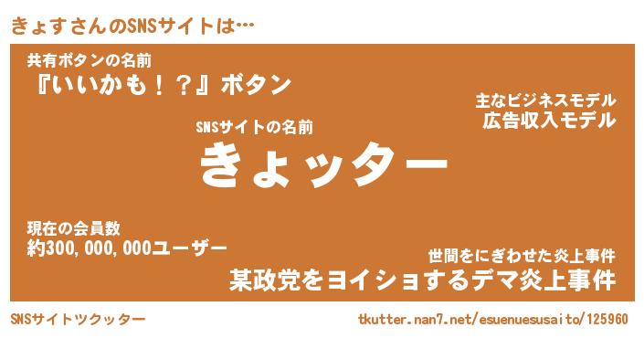 | 男性向けラノベタイトル風あだ名 | 『キョスアートオンライン』 |