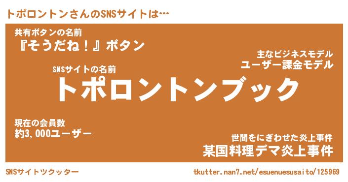 | 男性向けラノベタイトル風あだ名 | 『トポロントンアートオンライン』 |
