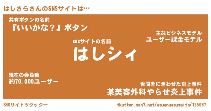 | 意味不明あだ名 | 『ペロリンはしさら』『永久保存はしさら』 |