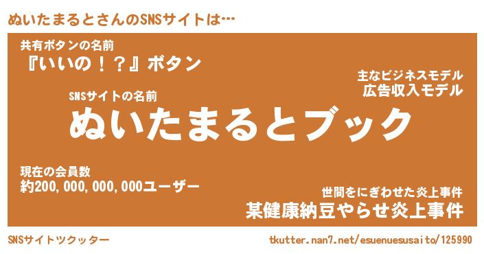 | 男性向けラノベタイトル風あだ名 | 『ヌイタマルトアートオンライン』 |